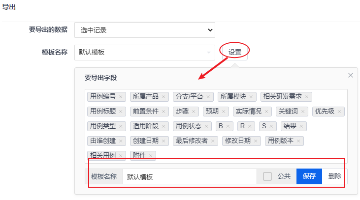 可以自定义模板导出的字段,将模板命名并保存,以供下次使用。