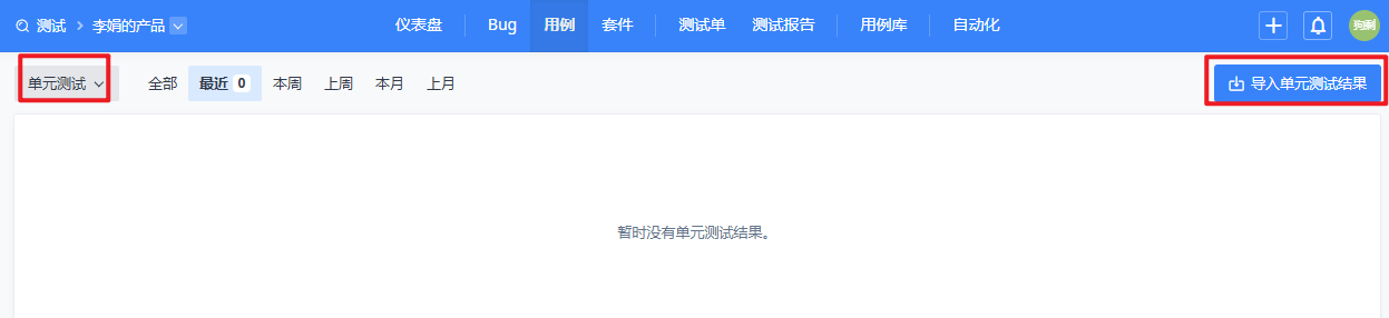 在单元测试页面,点击右侧的导入单元测试结果按钮,