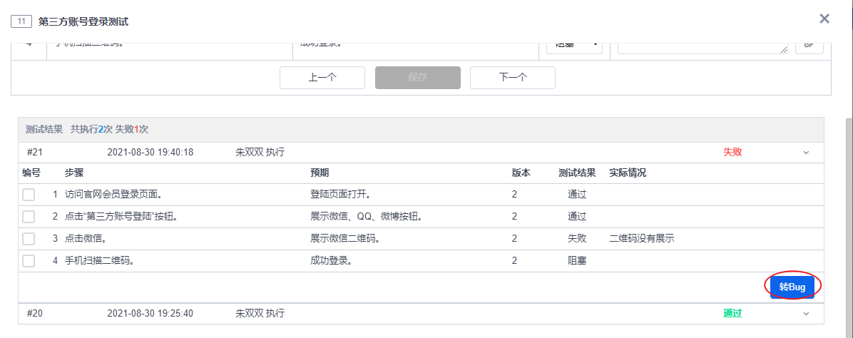 也可以在用例例表中,点击“转Bug”按钮。