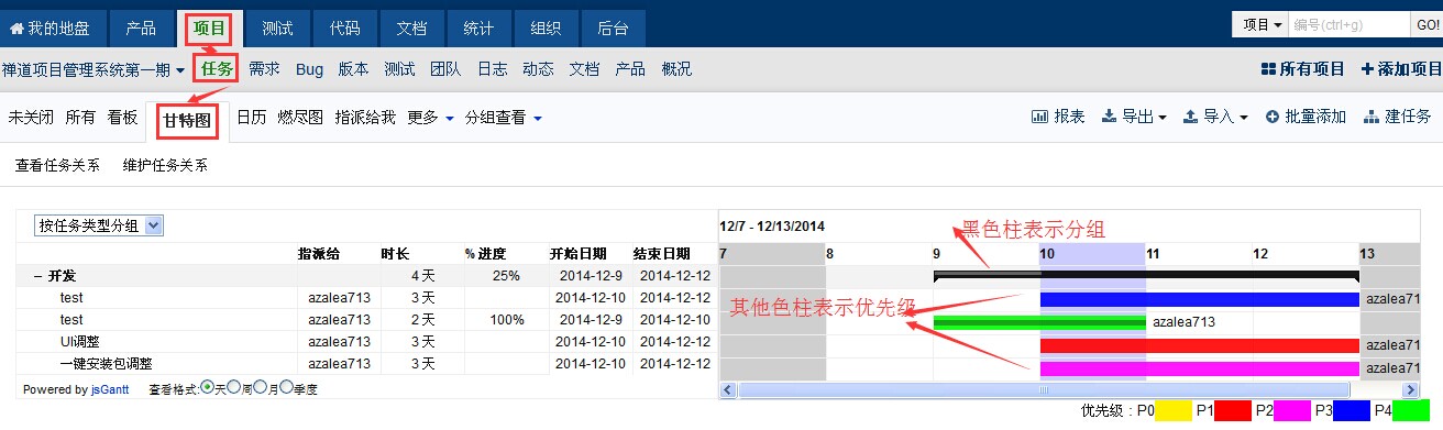 禅道企业版本提供了甘特图功能,通过甘特图插件可以比较直观地了解整体项目的进度。下面让我们来看下具体的功能:
