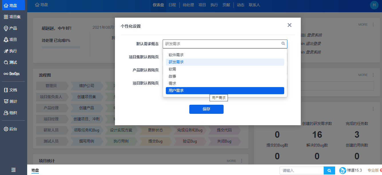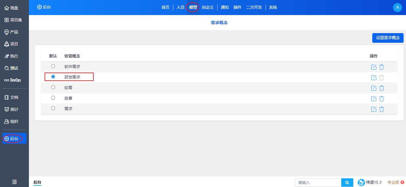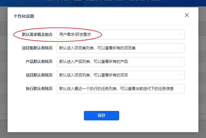 如果用户没有在“个性化设置”下对需求概念进行设置,那么将默认使用“研发需求”的概念。