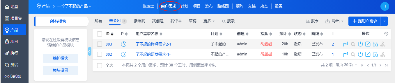 设置后,可以看到产品下的需求概念已经发生变化。