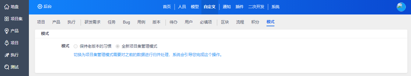 模式是用于设置禅道的界面和管理模式。