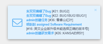 浏览器通知功能开启后,可以在禅道系统界面右下角接收到通知,且点击通知内容里的标题可以直接跳转到详情页面,比如需求、任务、Bug名称。
