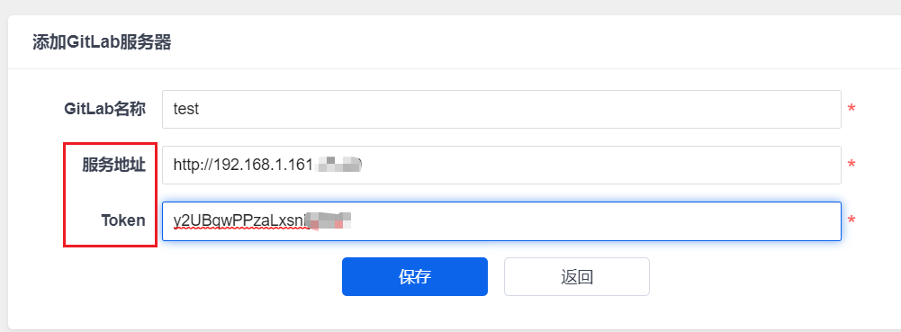 需要填写GitLab服务器地址和管理员权限且有效的Token。