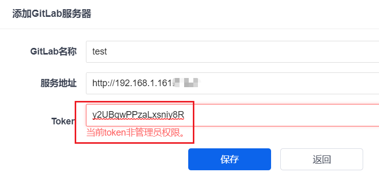 使用非管理员权限的Token无法添加Gitlab服务器。