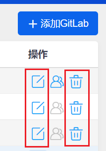 GitLab服务器列表右侧有编辑、删除操作按钮。