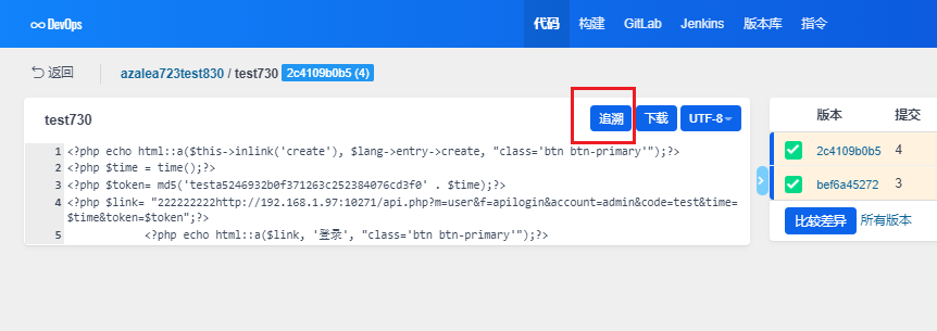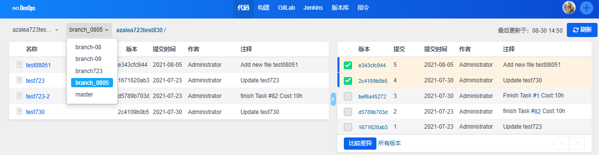 也可以在版本库的列表里查看到GitLab类型的版本库。