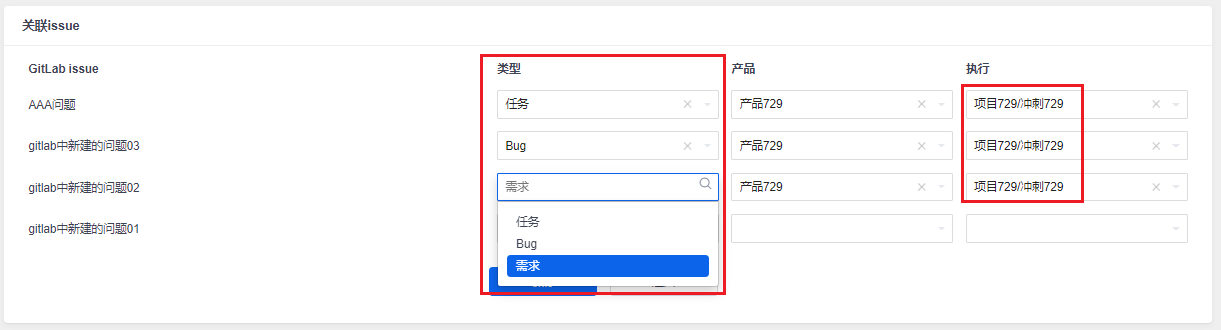 关联需求类型的issue: