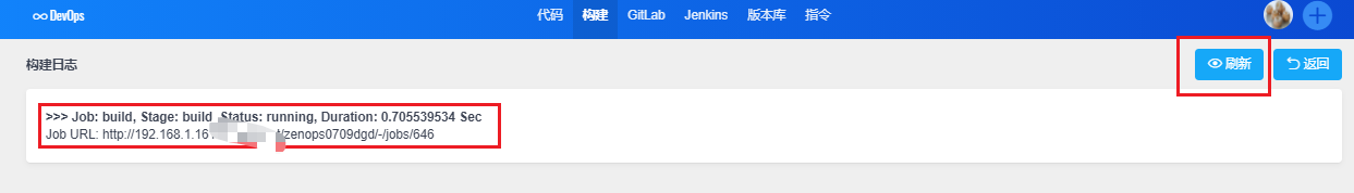 查看构建日志,可以刷新查看具体的构建日志。