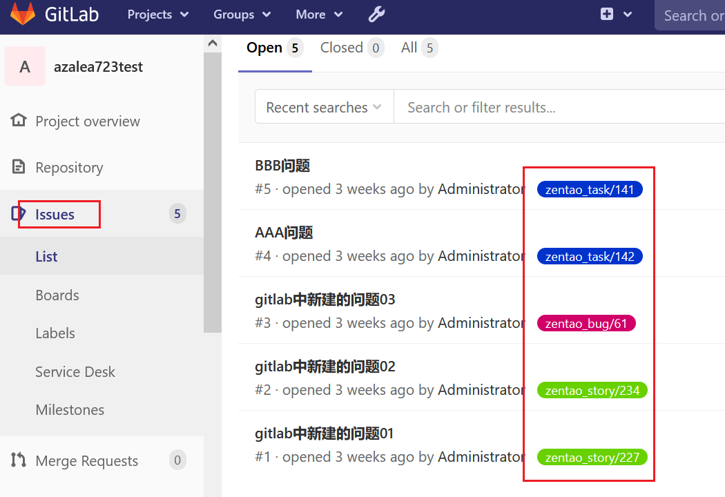 已经导入到禅道中的issue,在GitLab中的issue页面中会添加禅道标签(形式:对象_对象ID,如task_1234)并将URL作为标签值。