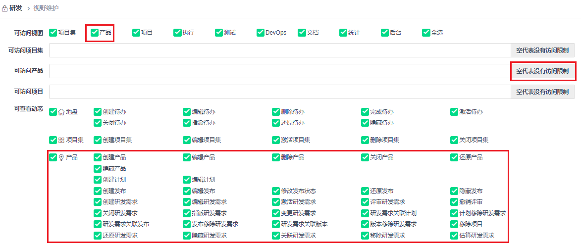 - 如果产品A访问控制是私有,项目B关联了产品A,那么项目B的团队成员、干系人也可以访问到产品A。