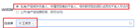 - 私有:产品负责人、产品测试负责人、产品发布负责人,产品所属项目集的干系人,相关联的项目团队成员、干系人可以访问。