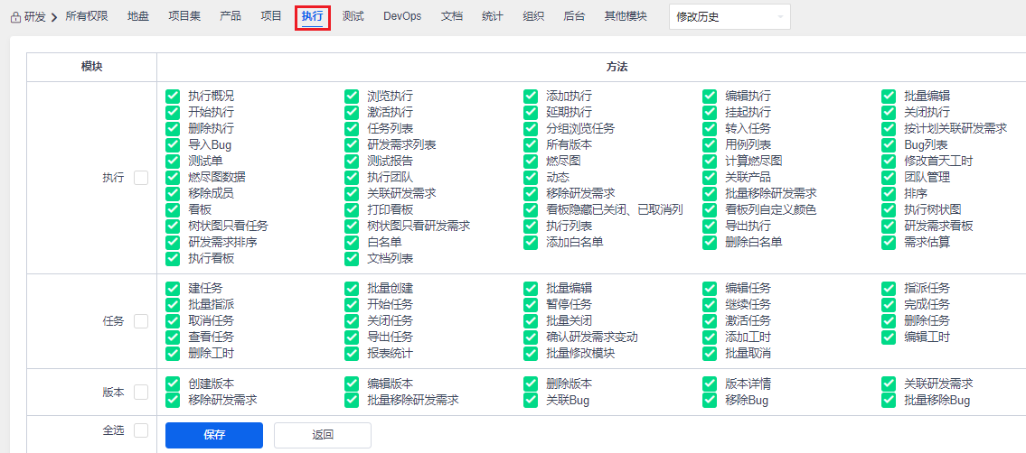 禅道的所有权限维护都是在后台--人员--权限下维护的。