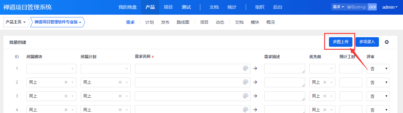 批量添加需求时,支持多图上传。