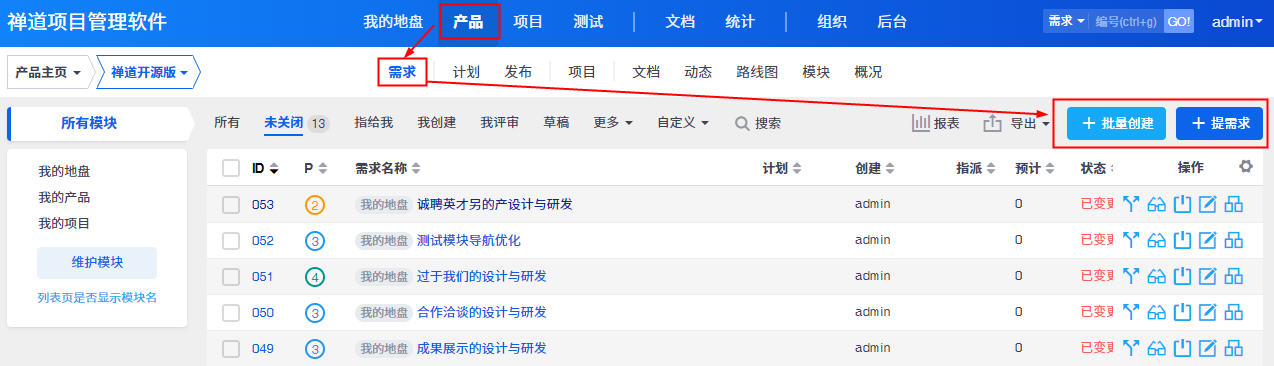 上篇文章我们讲述了如何添加产品。有了产品之后,我们就可以来创建我们的第一个需求了。