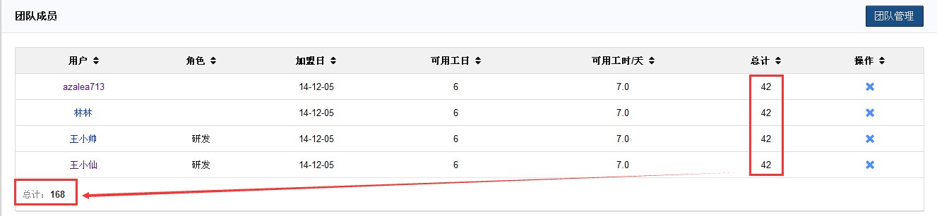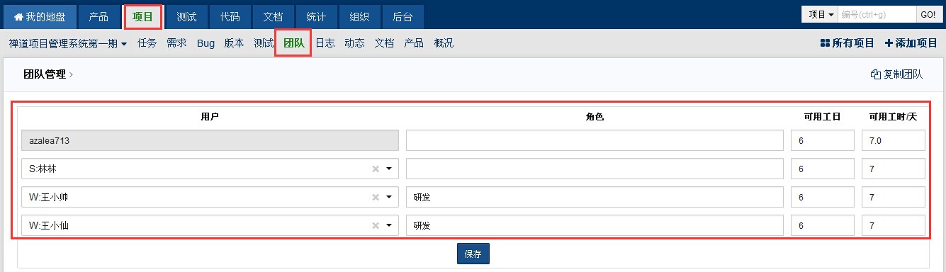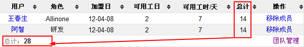 在维护项目团队的时候,需要选择都是哪些用户可以参与到这个项目中,同时需要设置这个用户在本项目中的角色(角色可以随便设置,比如风清扬,冬瓜一号等)。可用工作日和可用工时每天需要仔细设置。通常来讲,一个人不可能每天8小时投入,也不可能一星期七天连续投入。设置完毕之后,系统会自动计算这个项目总得可用工时。