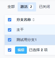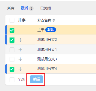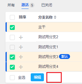批量编辑分支,勾选多个分支后,点击底部的编辑按钮,进入批量编辑分支页面。