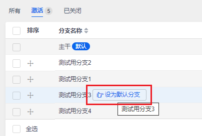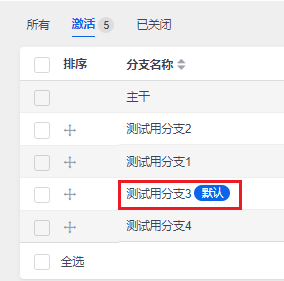 分支创建成功后,默认状态是激活的,可以编辑修改为关闭。