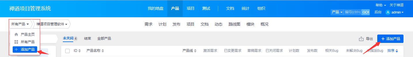 使用bug管理功能之前,需要先创建产品。禅道里面设计的理念是bug主要附属在产品概念下面的,后面我们会详细讲述产品和项目之间的关系。