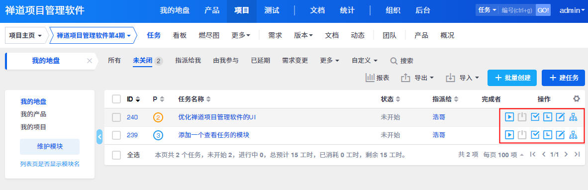 - 5.2.3 新版本禅道的最简使用