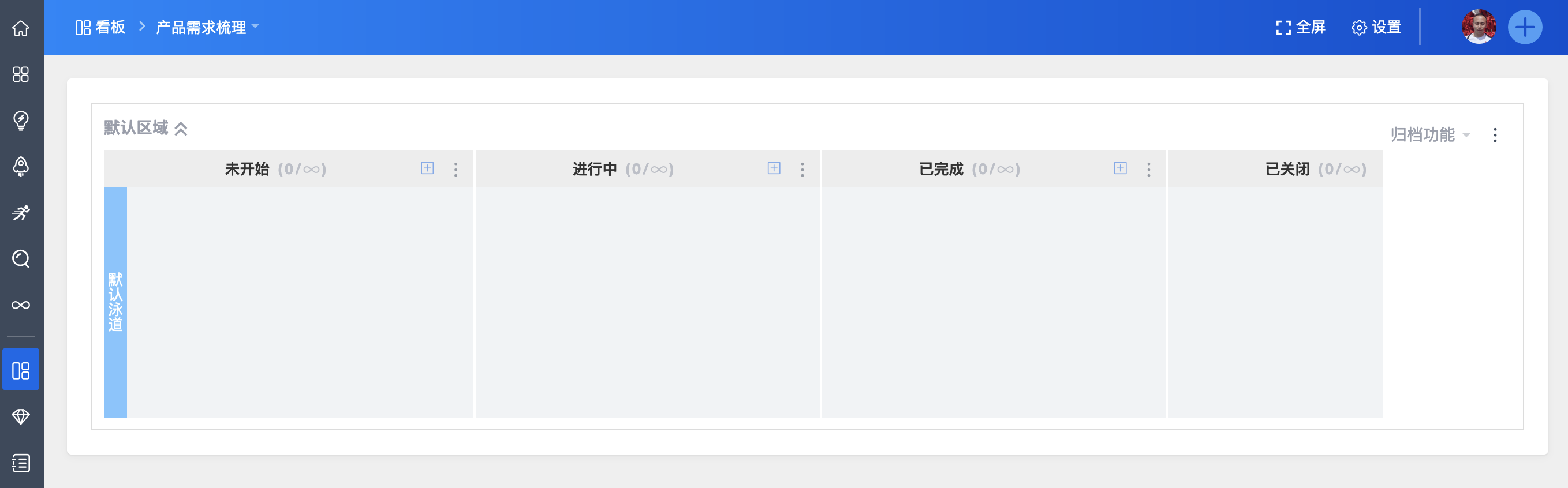 看板中默认只有一个泳道,简单事务通过一个泳道来进行管理就足够了,用户也可以根据实际需要新增多个泳道。