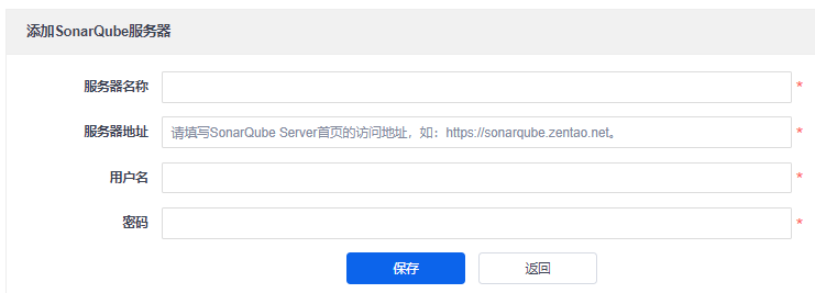 点击SonarQube服务器列表页面右上角“添加SonarQube”按钮,进入添加SonarQube服务器添加页面。