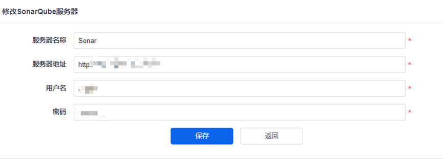 进入编辑SonarQube服务器页面,编辑SonarQube服务器时,会对服务器名称和服务器地址进行重复检查,并且会验证填写的用户凭证是否正确。
