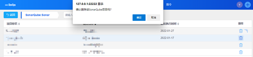 点击SonarQube项目列表中的”删除SonarQube“项目按钮