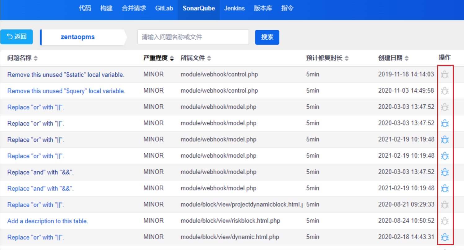 禅道16.4版本开始,支持SonarQube问题转Bug。