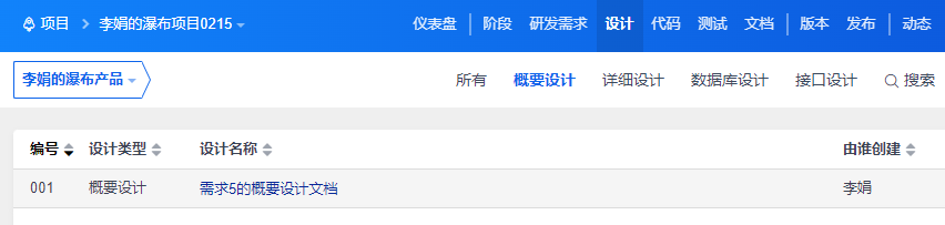 创建成功的概要设计可以在列表里查看到。