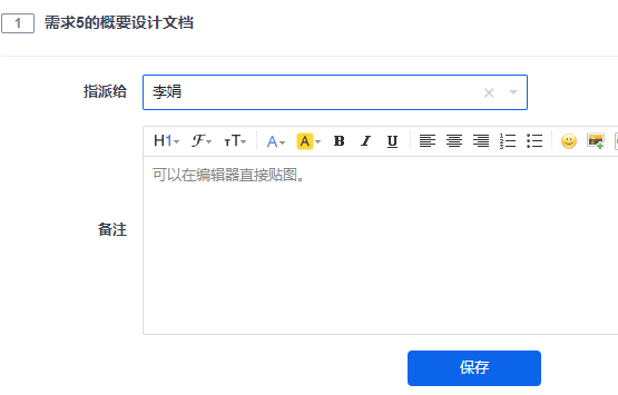 点击指派人可以实现概要设计的指派。指派人可以去查看和对设计文档进行变更。