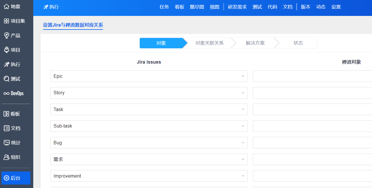 2.设置Jira与禅道的对象关联关系