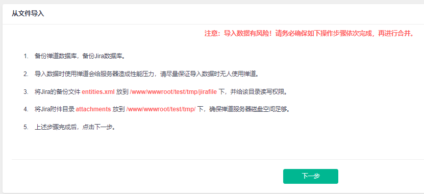 在导入数据之前请务必备份好禅道和Jira的数据库和附件。