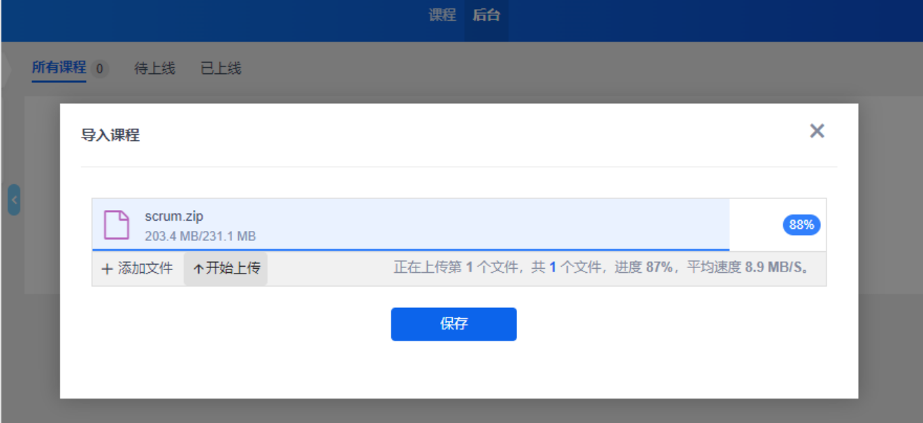 点击上传课程按钮,可以上传禅道平台提供的课程文件。