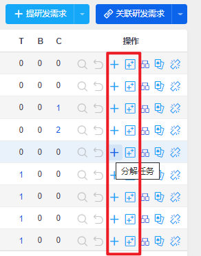 点击项目/执行需求列表右侧操作栏的分解任务和批量分解按钮,可以把需求分解为一个或者多个任务,多种类型的任务。