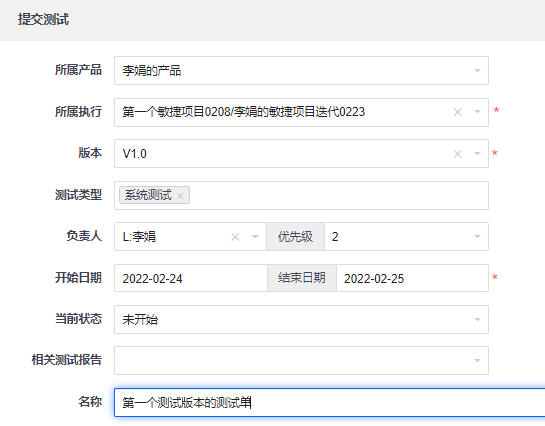 构建关联好需求和Bug后,就可以提交测试,创建测试单了。