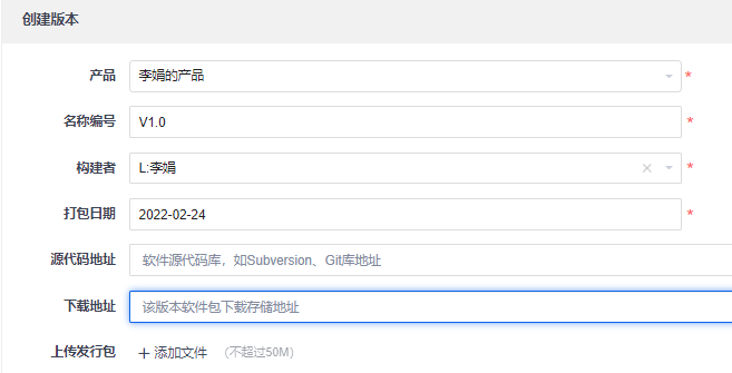 创建构建时,如果该项目/执行只关联了1个产品,直接列出产品名称。如果该项目/执行关联多个产品或者是一个产品的多个分支,可以在下拉列表里切换。