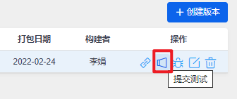 点击构建列表右侧的提交测试操作按钮,跳转到创建测试单页面。