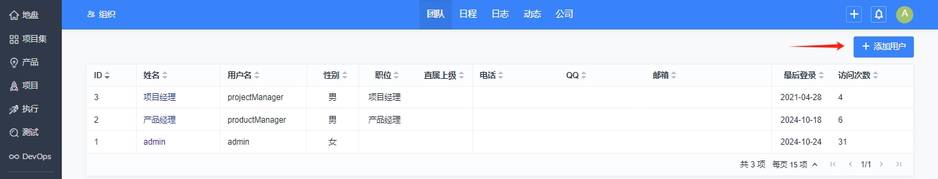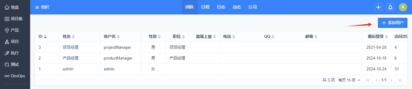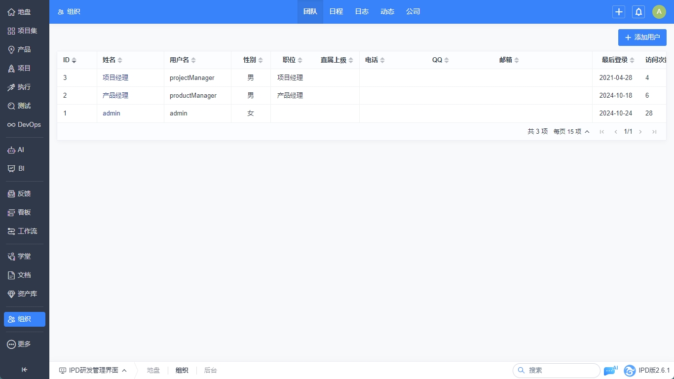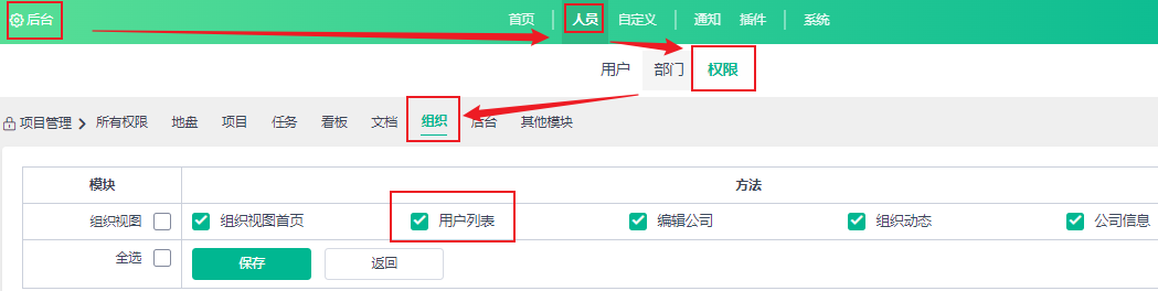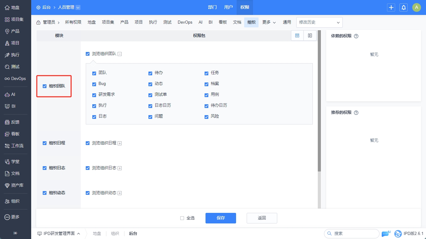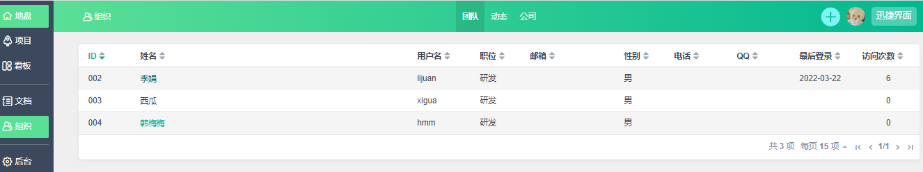 访问组织-团队页面,需要在后台-用户-权限页面给用户权限后才可查看。
