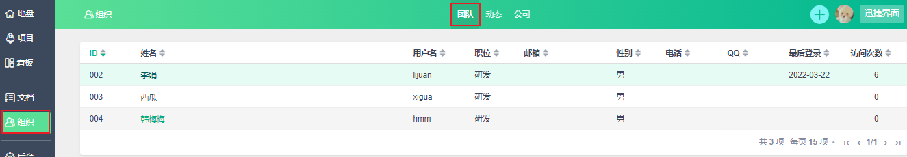 本章主要讲解组织-团队中查看用户团队成员信息以及工作内容。