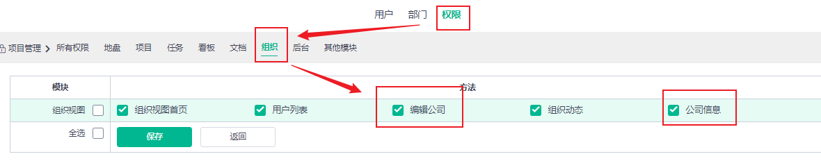 访问该页面首先需要进行设置权限,用户应该都可以查看公司信息,编辑公司信息可以根据需要给用户分配。