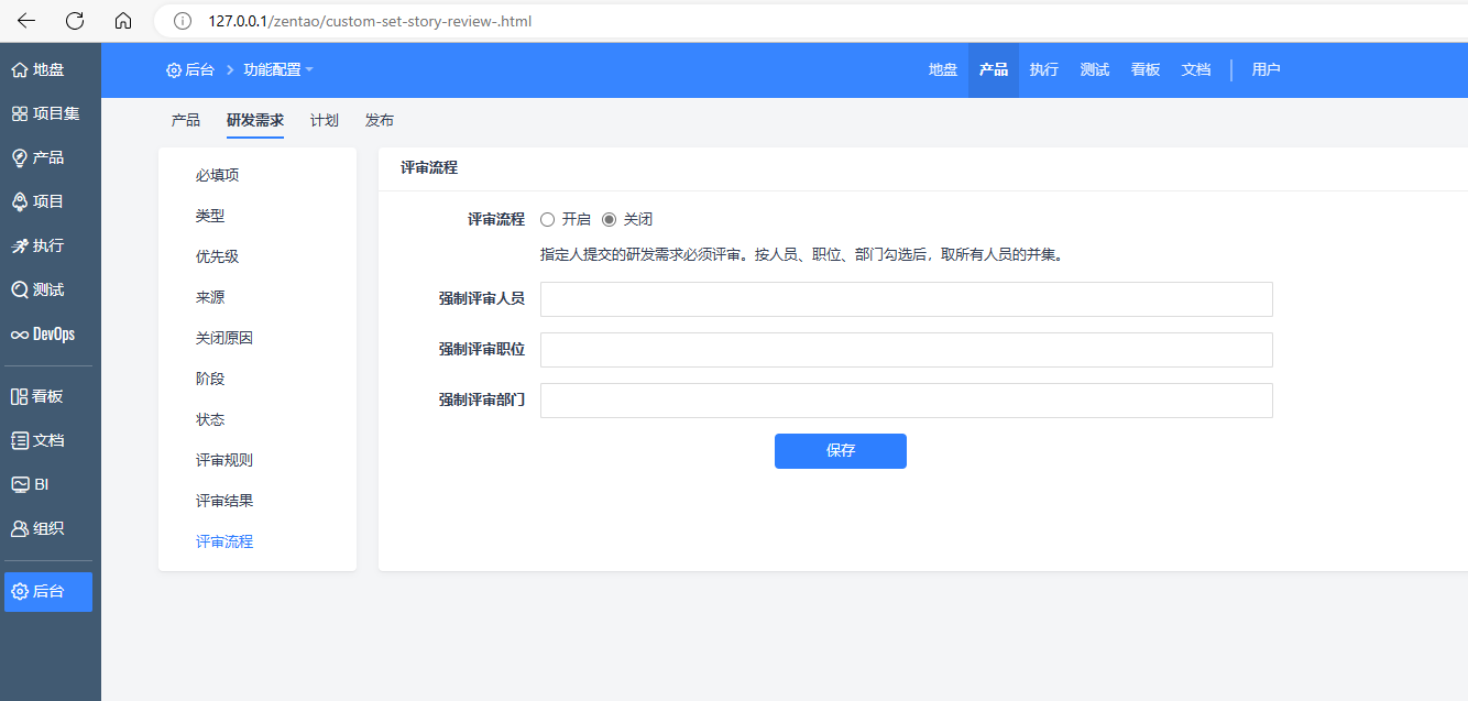 后台 - 功能配置 - 研发需求 - 评审流程
