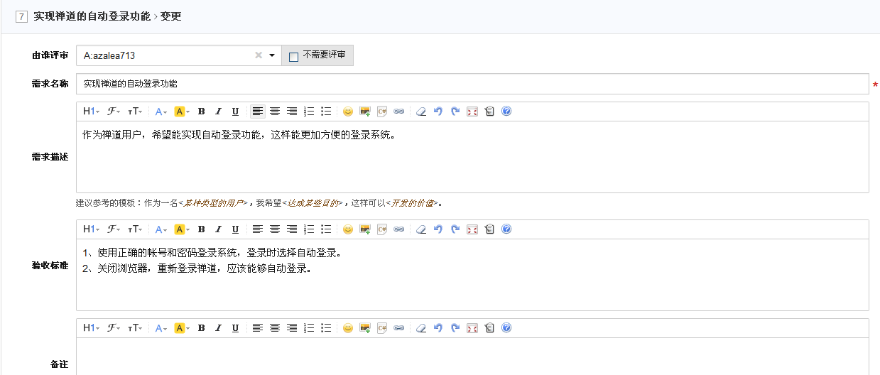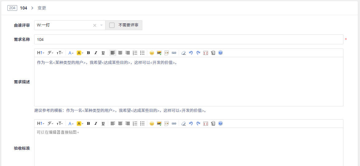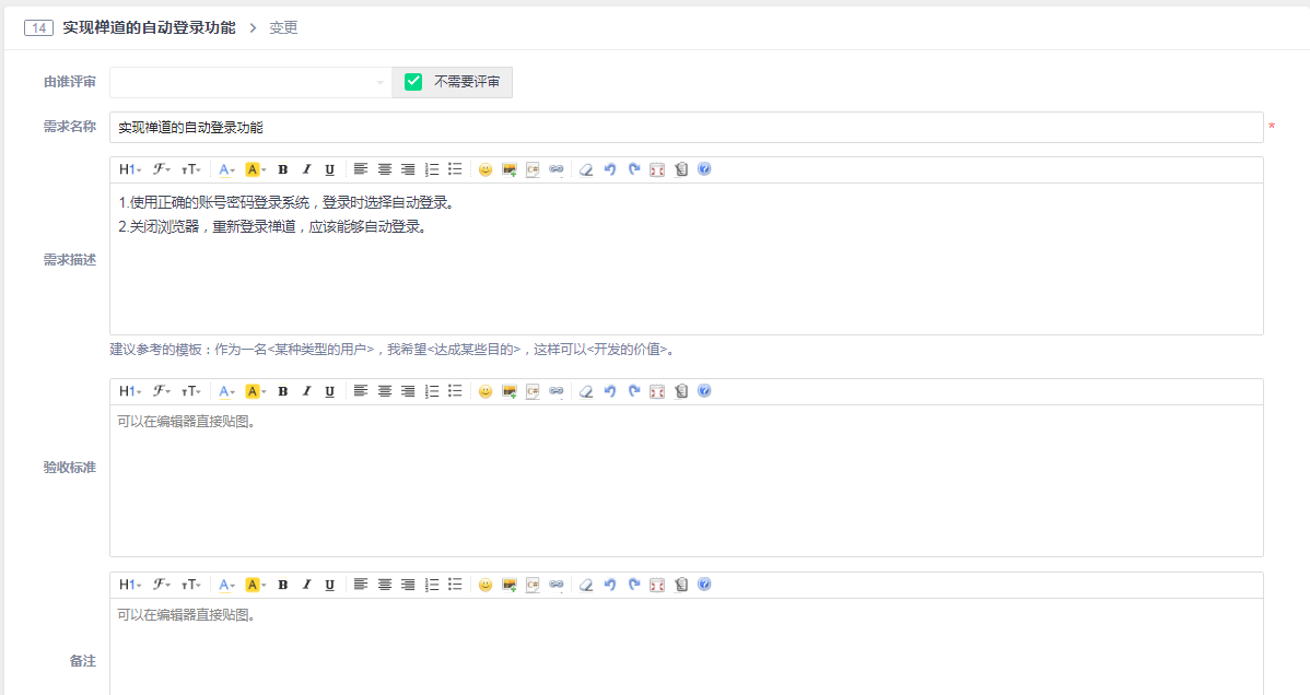 - 需求的标题、描述和验证标准是需求的主要的三个元素,应该认真清晰的进行填写。