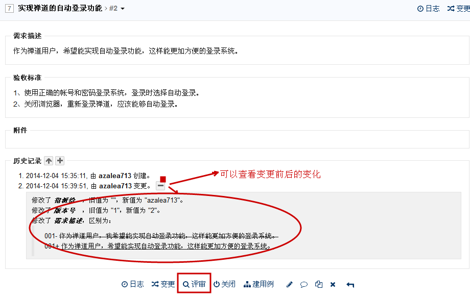 4.1 通过需求的详情页面查看变更前后的变化