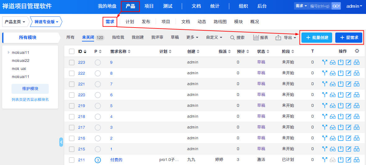 有了产品之后,就可以来创建需求了。