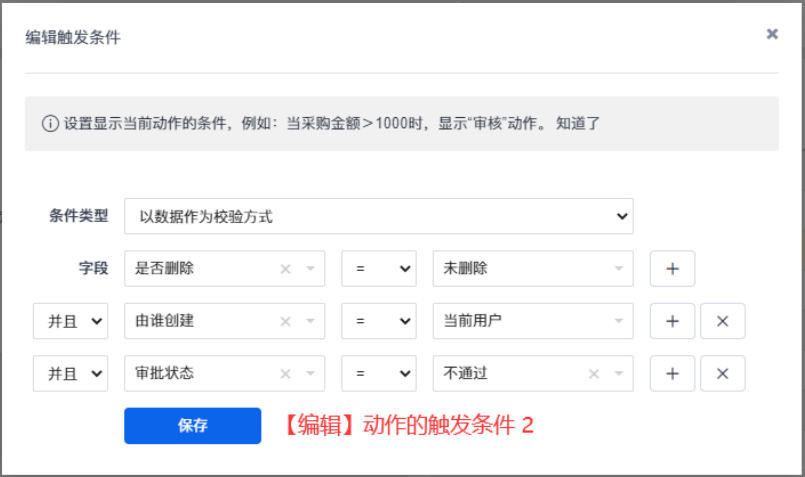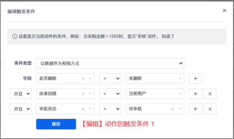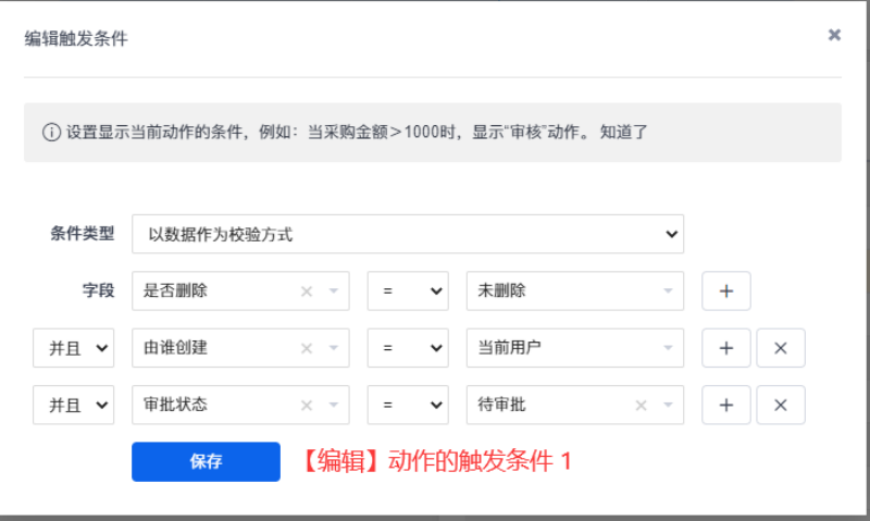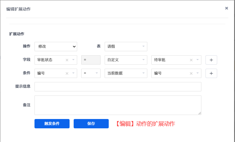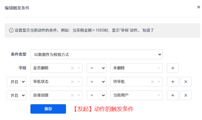 动作配置完成后,审批功能也就配置完成了。