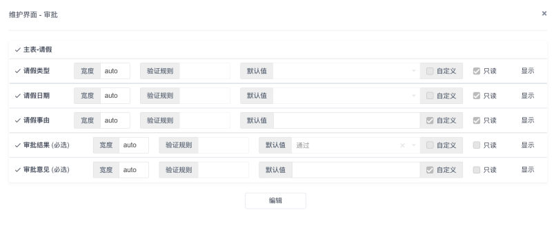 如果列表数据太多,还可以可以配置发起和审批页面的字段。