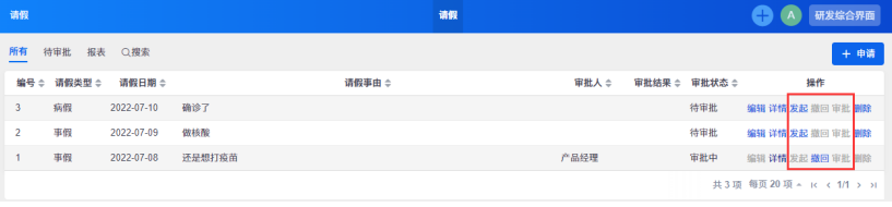 在列表和详情,可以进行发起、审批、撤回操作。