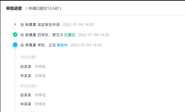 蓝色节点代表正在进行中的审批: